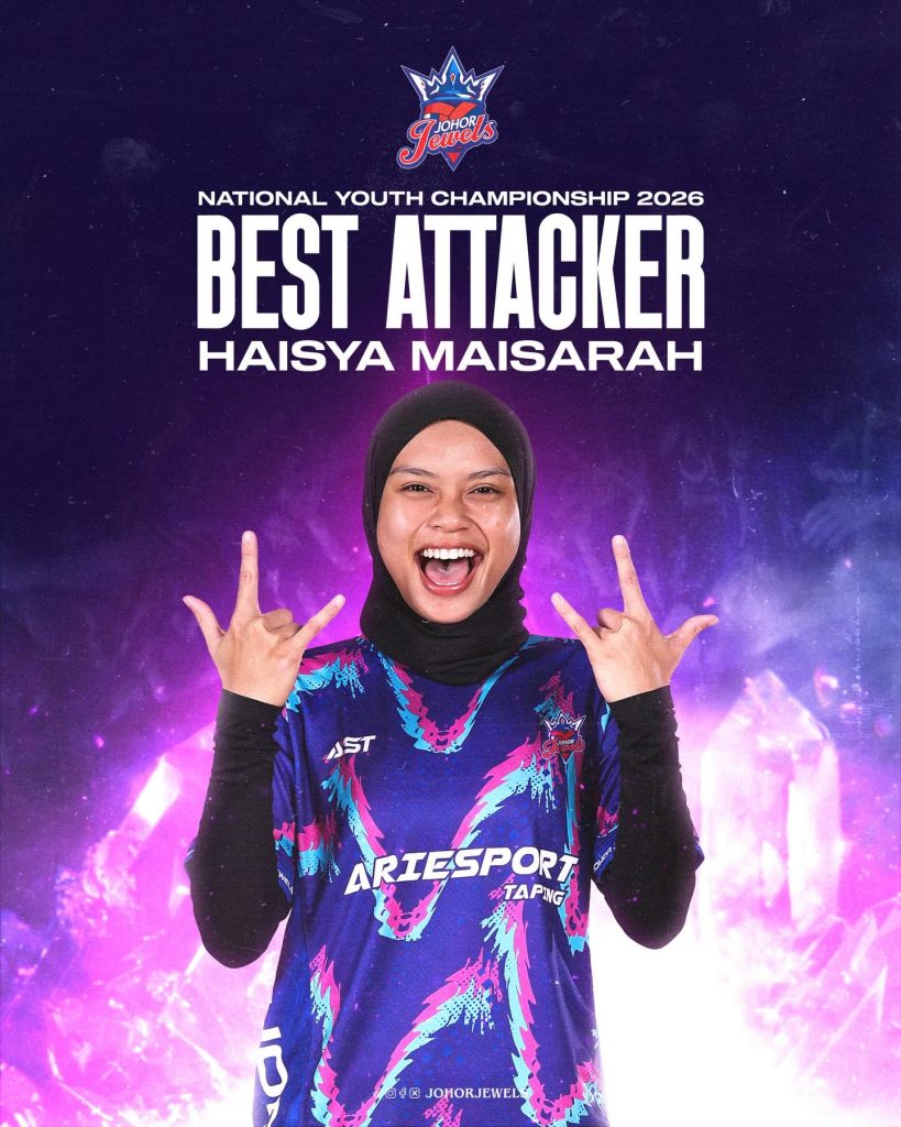 A standout performance recognised at the highest level. Congratulations to Haisya Maisarah on being named Best Attacker at the National Youth Championship 2026, a reflection of her skill, composure and consistency on court. #Reclaimthecrown #Johorjewels